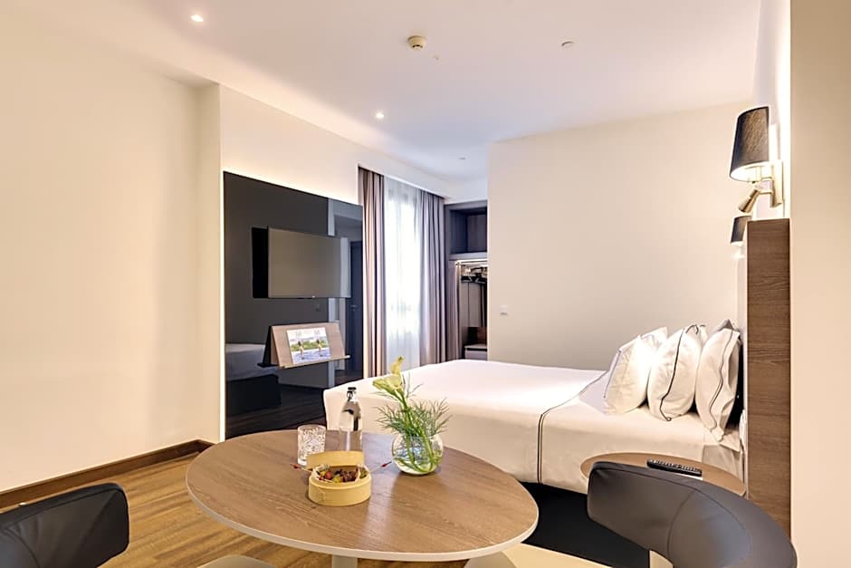 This premium room features elegant decor and modern furnishings. It offers views to quiet interior courtyard. This room comes with a double bed or 2 single beds (subject to availability). The room comes with a table and seats and a complete bathroom with shower, superior quality amenities and MP3 with Bluetooth and Nespresso coffee maker.