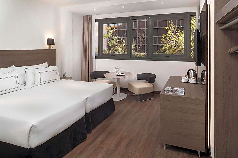 This superior room is located on the higher floors of the hotel and offers views of Diego de León street. The room is 20-22 square yards and comes with flat-screen TV, mini-bar and air conditioning as well as 1 double bed or 2 single beds, a sofa bed and a large bathroom with superior toiletries. Other facilities include an MP3 with Bluetooth and a Nespresso coffee maker.
